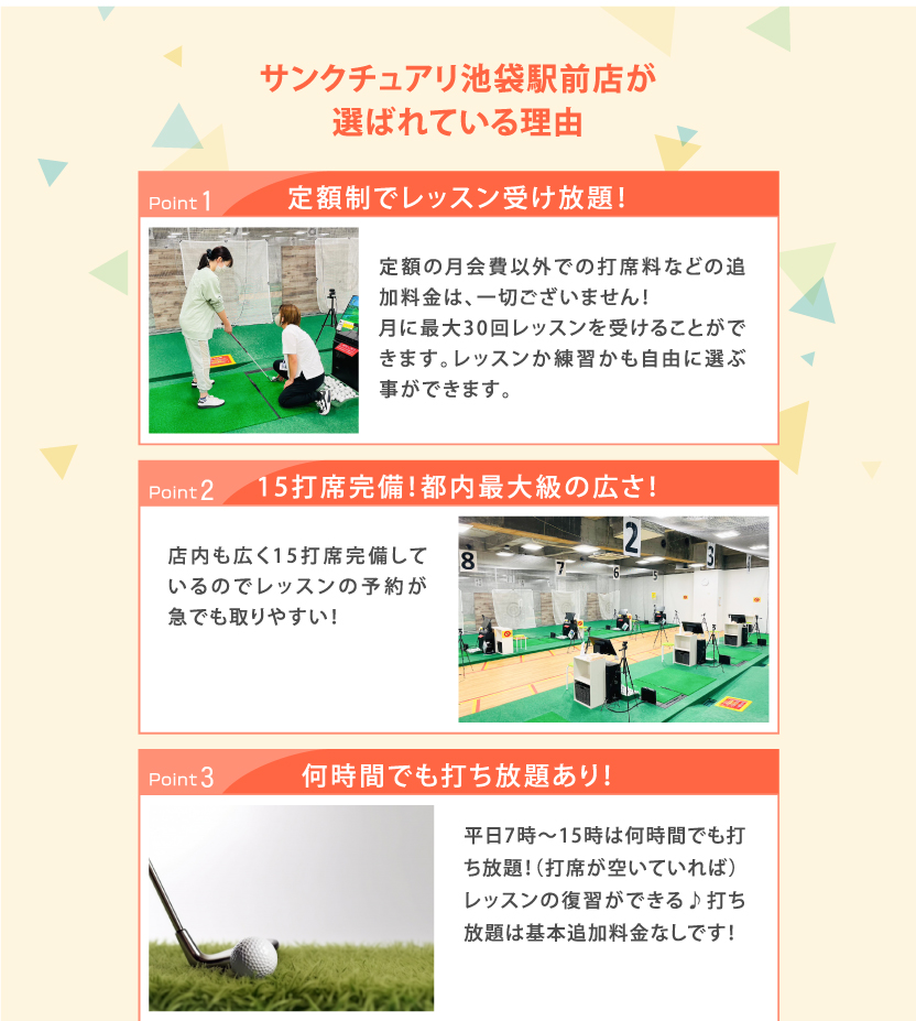 これまで8,000人以上をコースデビューさせた実績のあるサンクチュアリ独自の初心者に特化したマニュアルで統一しているので、混乱する事はありませんよ!また日々の中でインストラクター会議を重ね、会員様により良いレッスンが提供出来る様に日々改善しています!