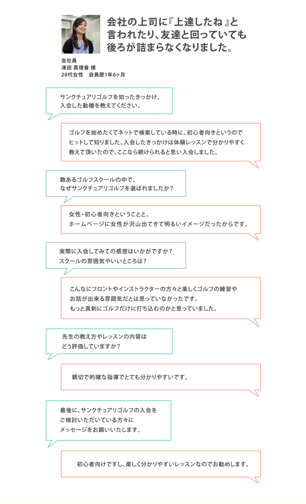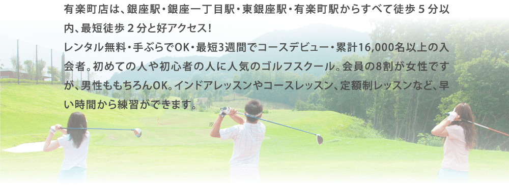 私達は初心者専用のゴルフスクールなので、運動が苦手なゴルフ未経験の方でも問題なく上手になれる独自のレッスン方法があります!ゴルフをした事がない女性をコースデビューさせた実績があるんです(*^_^*)